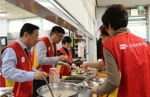 완주군 장애인복지관에서 진행된 이번 봉사활동은 설 명절을 맞이하여 150여명의 어르신들에게 정성이 담긴 떡국을 대접하고 우체국 직원들이 준비한 떡과 음료를 제공했다.