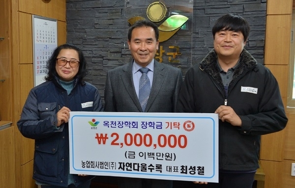 또 농업회사법인(주) 자연다울수록 최성철 대표도 200만원의 장학금을 기탁했다. 자연다울수록은 화훼재배를 바탕으로 야생화, 약초, 산책로를 통해 체험농장을 만드는 사업 등을 하고 있다.