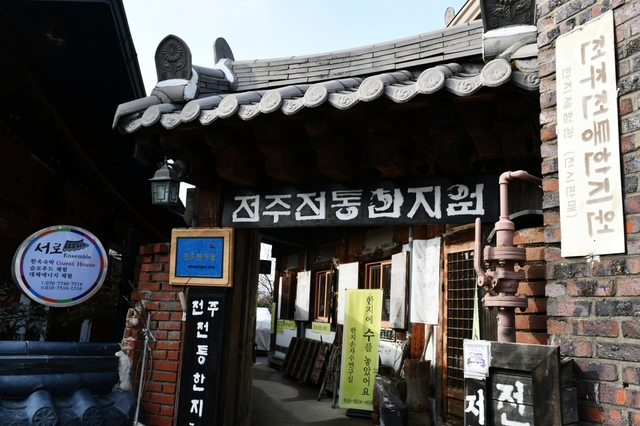 전통 기법으로 한지가 만들어지는 과정을 볼 수 있는 ‘한지원’은 골목 안에 있습니다. 전시판매장도 함께 운영하고 있어 한지 구매도 가능하고요.