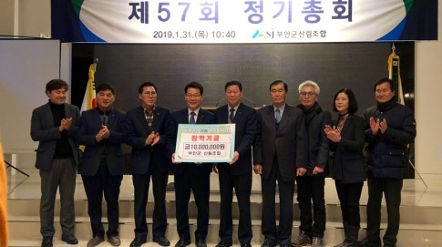 이날 회의장에서 부안군산림조합은 부안군 근농인재육성재단(이사장 권익현)에 장학금 1000만원을 기탁했다. 조합 관계자에 따르면 지난 2015년부터 올해까지 매년 1000만원씩 기탁하여 장학금 지급액이 총 5000만원에 달한다.