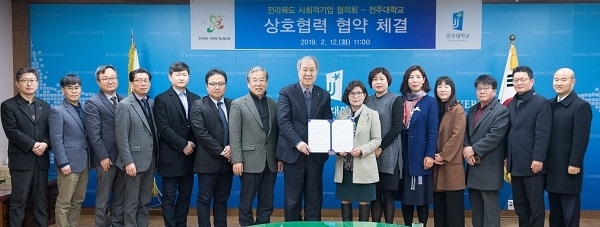 전주대학교(총장 이호인)는 12일 전라북도 사회적기업 협의회와 지역 사회경제 활성화 및 지역현안 문제 해결을 위한 업무협약(MOU)을 체결했다.