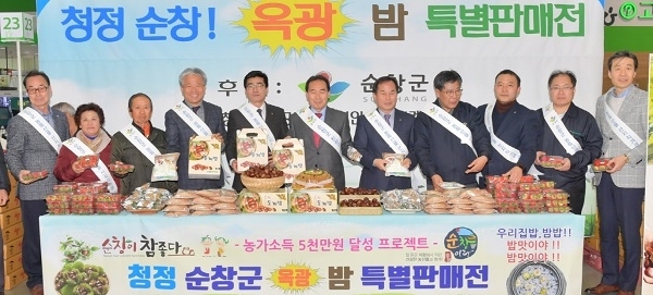 순창군이 서울에서 지역의 대표 농산물인 밤(옥광) 판촉행사를 갖고 농산물 판로 확대에 두 팔을 걷어붙였다.