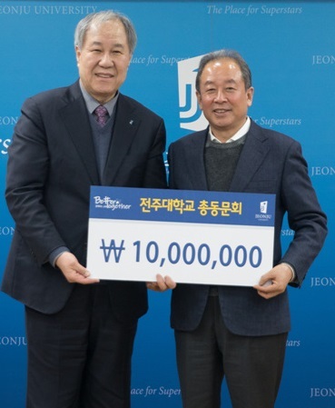 전주대 총동문회(회장 임정엽)는 지난 12일 전주대 후배들의 학업을 지원하기 위해 장학금 1000만 원을 전달했다.