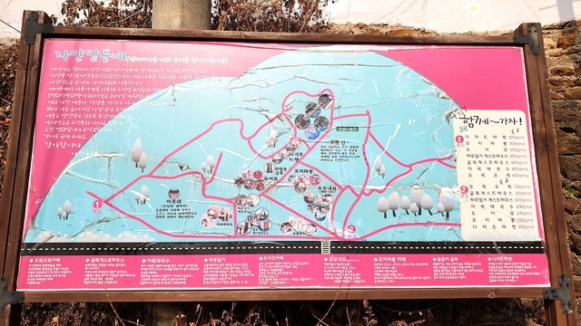 저는 이 마을이 처음이 아닌데도 안내표지를 꼼꼼히 읽어보며 아래에 깨알 소개한 마을 가게 중 어느 곳을 들어가 볼까도 생각하고 출발합니다. 방문자들에게 있어 마을의 첫인상이자 종합안내도인 이 간판은 다시 정비를 좀 하면 좋겠다 싶었습니다. 다 돌아보고 나중에 알았는데 아래 소개한 가게 중 문을 닫고 영업을 하지 않는 곳도 있었거든요.