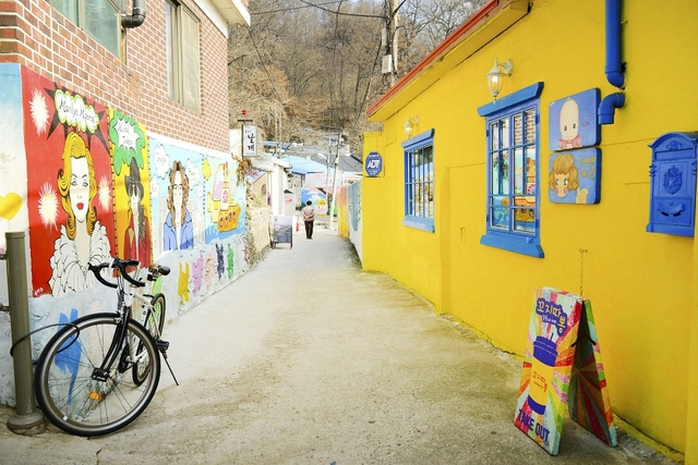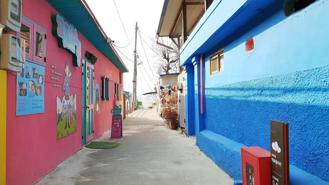 불타는 가을과 흰 눈이 펄펄 내리는 겨울 풍경까지 골목 벽화가 마음을 환하게 밝혀주었습니다.