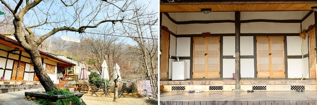 골목 비탈길과 맞닿아 있던 작은 창에 숙박이라는 나무 간판, 아래로 내려오니 대문이 활짝 열려 있고 사진 무료 개방 그리고 전화번호가 적혀있었습니다. 마음 편하게 들어가 볼 수 있었고 마당에 서보니 위로도 집이 있고 아래로도 집들이 있는 위치였습니다. 오랜 세월 그 자리를 지키며 마을을 내려다봤음 직한 나무, 마당은 노천카페, 한옥 마루에 겨울 햇살이 스며든 모습을 보니 하룻밤 머물고 싶어졌습니다. 다음에 전주 오면 이 집에서 머물고 싶다고 SNS에 사진을 올렸더니 멀리 미국 사는 친구가 한국 가면 자기랑 같이 가자고 바로 댓글이 달렸습니다.