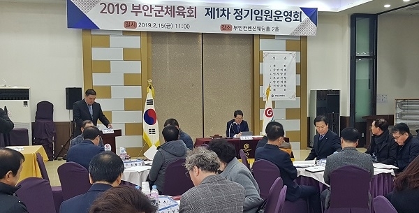 부안군체육회(회장 권익현)는 지난 15일 부안컨벤션센터에서 체육회 임원 70여명이 참석한 가운데 2019년도 제1차 정기 임원운영회를 개최했다.