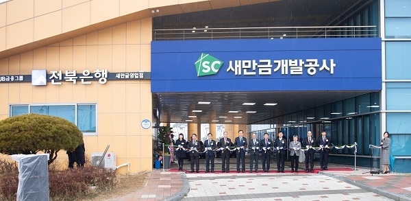 JB금융그룹 전북은행(은행장 임용택)은 19일 군산시 새만금개발공사 내 새만금영업점 개점식을 가졌다.