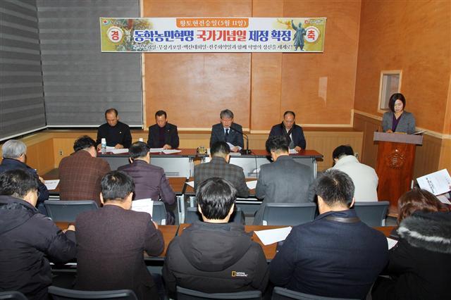 유 시장은 “기념일 제정을 계기로 동학농민혁명의 역사적 가치와 의미를 재조명하는 기념사업과 선양사업을 발굴해 추진하는데 더 많은 노력을 기울여 나가겠다”며 “전 국민의 관심도 제고가 가장 중요한 만큼 빠른 시일 내에 도올 김용옥 선생을 초빙한 특강을 준비 중이다”고 밝혔다.