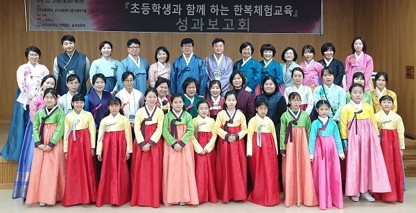 전주교육대학교(총장 김우영)는 지난 21일 전주교사교육센터에서에서 ‘초등학생과 함께하는 한복체험교육 성과발표회’를 개최했다.