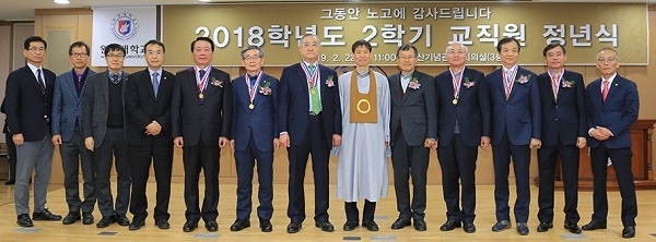 이번에 정년을 맞는 교직원은 백영석·최민규(의과대학), 김도종(철학과), 백의선(예술학부), 이상복(문예창작학과), 김기영(뷰티디자인학부), 성낙진(반도체디스플레이학부), 신용덕(전기공학과), 신홍규(전자공학과), 이용주(컴퓨터소프트웨어공학과) 교수와 이경중(학생생활관)·한태희(학생복지처) 선생 등 모두 12명이다.