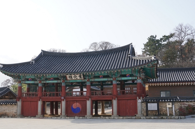 향교의 정문인 만화루는 2층 누각으로 되어있으며 5간짜리 문루입니다. 유생들이 시회를 열거나 학생들이 자치활동을 하던 공간이었답니다. 외삼문에 해당하는 만화루 오른쪽에는 충효관이 있는데 향교 사무실과 청소년 인성 교육장, 서, 화 지도실로 사용하고 있습니다.