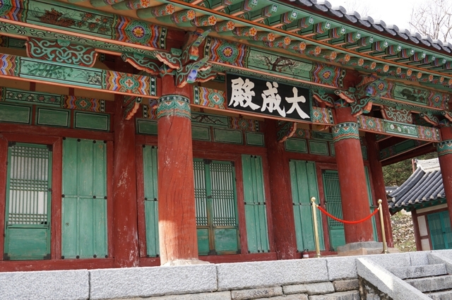 오른쪽 계단으로만 올라가야 합니다. 정면에 대성전이 있습니다.