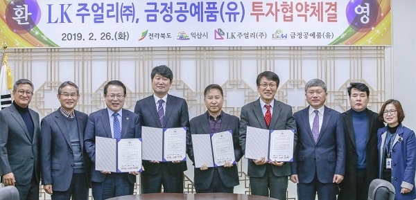 정헌율 익산시장은 “익산시에 투자하기로 결정을 내린 LK주얼리, 금정공예품에 감사드린다”며 “익산으로 이전하는 기업들이 안정적으로 정착할 수 있도록 행정에서도 할 수 있는 모든 지원을 아끼지 않겠다”고 말했다.