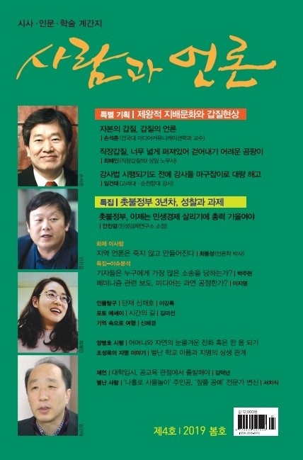 전주 ‘사람과 언론’이 계간지 <사람과 언론> 제4호(2019 봄호)(신아출판사)를 펴냈다. 사람과>