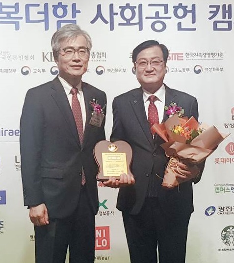 한국언론인협회와 한국경영자총협회가 공동주최, 기획재정부와 고용노동부등 개 부처가 후원, 올해로 9회째를 맞는 ‘행복더함 사회공헌 캠페인’은 사회적 책임을 성실히 이행하는 기업과 기관을 발굴해 포상하고 사회공헌 문화 확산에 기여하기 위해 2011년에 제정됐다.