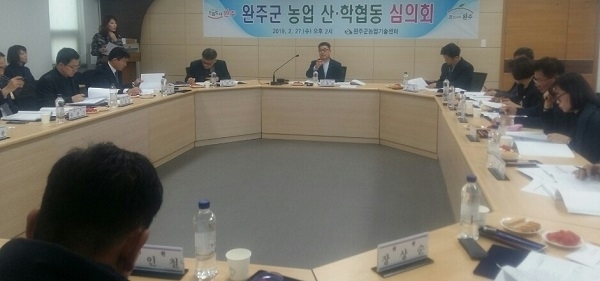 완주군은 지난 27일 농업기술센터 세미나실에서 대학교수, 농업 관련 기관, 농업인 단체, 농업 관련 부서, 선도 농가 등 심의위원이 참석한 가운데 ‘2019년 완주군 농업산학협동심의회’를 개최, 253억원을 투입하는 87개 사업 270개소의 사업대상자를 확정했다.