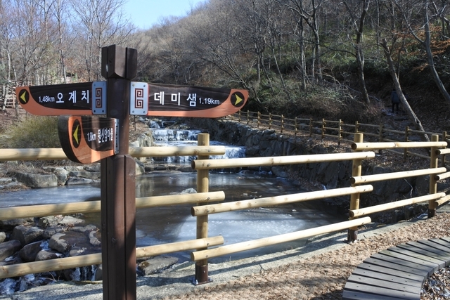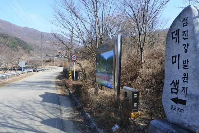 드디어 섬진강 발원지의 마중길목에서 데미샘의 미세한 흐름에 귀 기울여 봅니다.