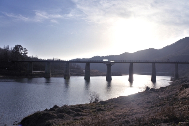 굽은 강줄기를 유유히 흐르던 강물은 임실의 상운사 거리 교량 아래를 지나며 숨 고르기를 위한 장소로 옥정호를 택했다고 하네요.