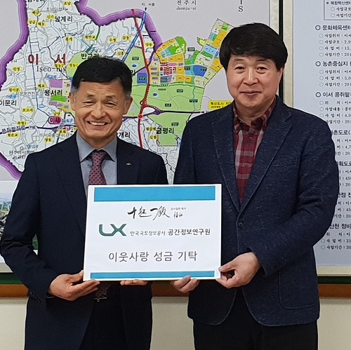 한국국토정보공사(LX) 공간정보연구원(원장 김현곤)이 완주군 이서면(면장 신승기)에 이웃사랑 성금으로 100만원을 기탁했다.