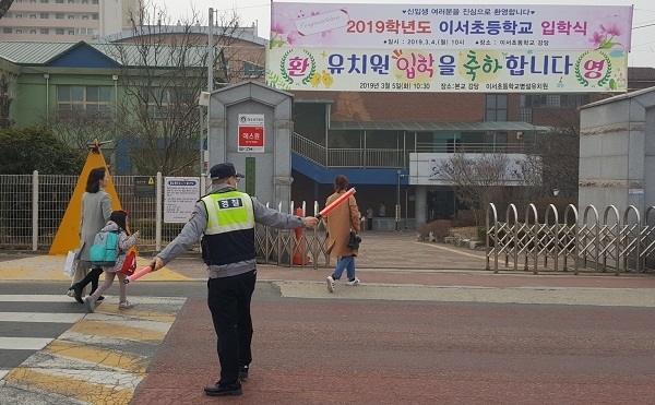 이서파출소는 사회적 약자인 어린이들이 각종 범죄나 사고로부터 안전하게 학교에 다닐 수 있는 환경을 만들기 위해 등교시간대 스쿨존 교통관리를 지속적으로 추진하고 있다.