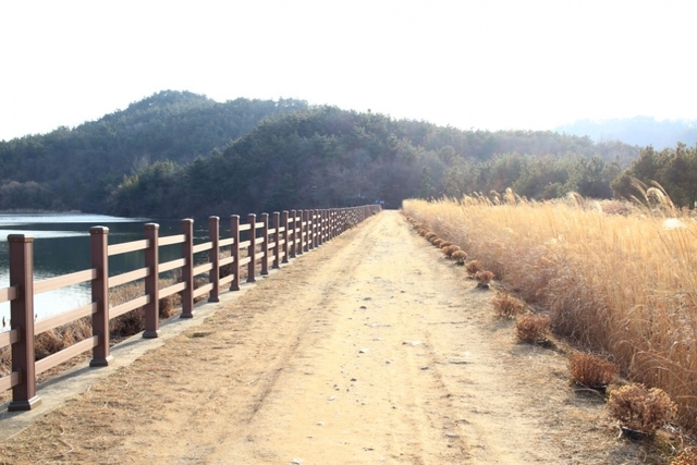 시원하게 뻗은 제방길과 넓게 펼쳐진 호수 풍경이 마음을 탁 트이게 해줍니다.
