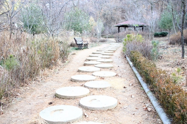 돌도 그냥 평범한 돌이 아니라 맷돌 모양으로 만들어 징검다리를 연상하도록 배치했습니다.