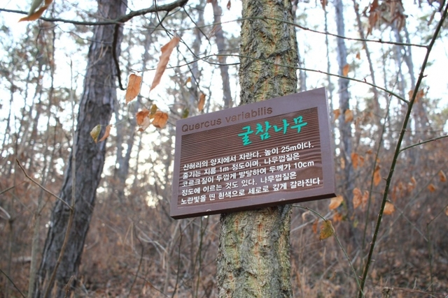 여러 번 찾은 곳이지만 아직 이름을 모르는 나무가 많은데 나무에 걸린 이름표가 도움이 됩니다.