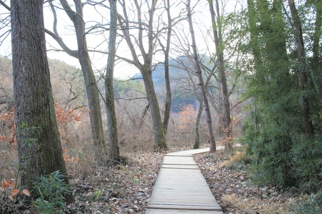 어느 구간에서는 나무로 만든 길을 지납니다.