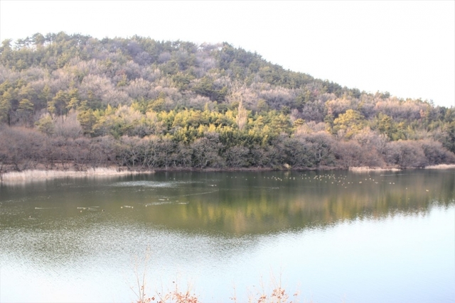 군산호수에는 겨울철에 철새들이 많이 찾아오는데 건너편 물가에서 한가롭게 놀고 있는 새들 모습도 보입니다.