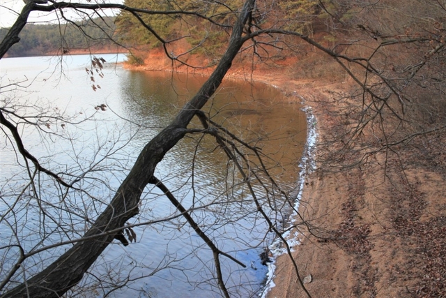 수변 길의 특징은 호수의 물이 산 모양에 따라 산속으로 깊이 들어왔다가 다시 나갔다를 반복합니다.
