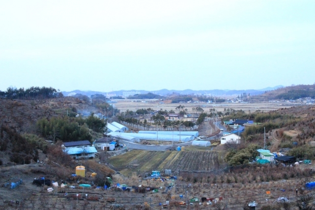 오른쪽 마을에 있는 오토캠핑장이 한눈에 보입니다.