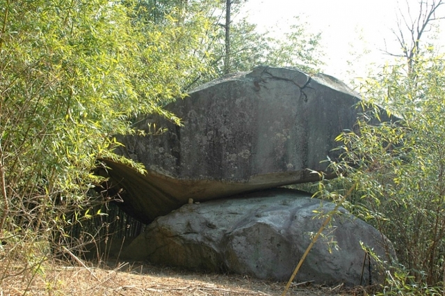 마을 제일 위쪽에 있는 집채만 한 큰 바위가 뜬 바위이며 큰 바위 위에 또 하나의 큰 바위가 올라가 있는 형태로 고인돌과 비슷한 형태를 한 바위입니다.