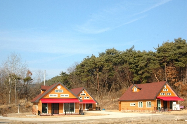 삼각 형태의 그림 같은 펜션도 대나무숲 옆에 보이네요.