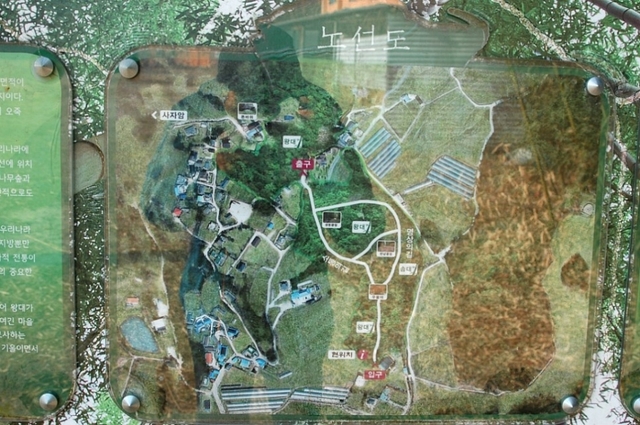 시골마을 치곤 110가구나 되는 큰 마을로 마을 한복판 제일 높은 언덕배기엔 수령이 무려 300년이나 되는 보호수 느티나무가 이 마을의 오랜 역사를 증명하며 수호신처럼 마을을 지키고 있고요.