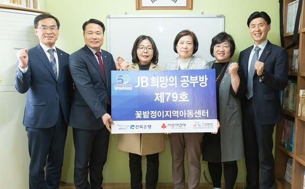 전북은행(은행장 임용택)은 5일 전주시 평화동에 위치한 꽃밭정이지역아동센터에서 ‘JB희망의 공부방 제79호’ 오픈식을 실시했다고 밝혔다.