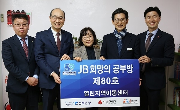 전북은행(은행장 임용택)은 6일 고창군 고창읍에 위치한 열린지역아동센터에서‘JB희망의 공부방 제80호’ 오픈식을 실시했다고 밝혔다.