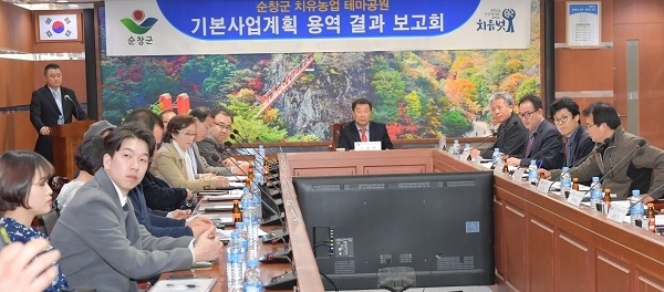 순창군농업기술센터는 최근 군청 영상회의실에서 치유농업테마공원 조성을 위한 용역보고회를 가졌다.
