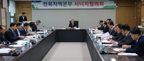 전북농협(본부장 유재도)은 12일 지역본부에서 계열사 간 소통을 강화하고 시너지를 제고하고자 ‘전북지역본부 시너지협의회’를 열었다.