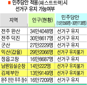 지역구를 유지할 수 있는 곳은 전주완산·덕진, 군산, 정읍·고창 등 4곳이다.