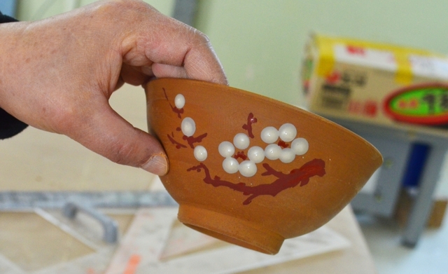 완성되면 이렇게 예쁜 매화 그림이 그려지네요. 나만의 그릇을 가질 수 있다는 생각에 새겨지는 그림 하나하나에 정성스런 손길이 더해집니다.