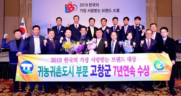고창군이 21일 밀레니엄서울힐튼호텔에서 열린 ‘제9회 한국의 가장 사랑받는 브랜드 대상’ 시상식에서 ‘귀농·귀촌도시’ 부문 7년 연속 대상을 수상했다.