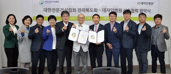 대한전문건설협회 전라북도회(회장 김태경)는 21일 대자인병원(원장 이병관)과 의료서비스 제공을 위한 업무협약을 맺었다.