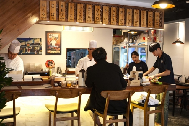 가게 2층으로 올라가는 벽에 적혀진 문구처럼 ‘인생도 초밥처럼 날로 먹으면 얼마나 좋을까요?’라는 생각이 듭니다. 그렇다고 초밥집 직원분들이 초밥을 날로 만드는 것은 아닙니다. 초밥 하나하나에 정성을 들여 만드는데요. 직원분들이 초밥을 만드는 장면을 잠시 구경해보겠습니다.