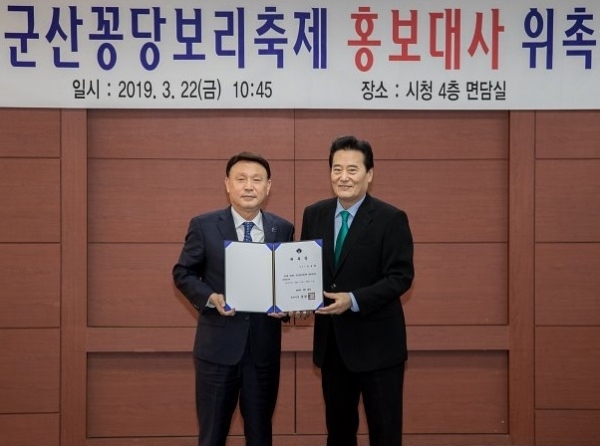 군산시는 지난 22일 김성환 씨에게 홍보대사 위촉장을 수여하고 군산 꽁당보리축제 성공 개최를 위한 의지를 다졌다.