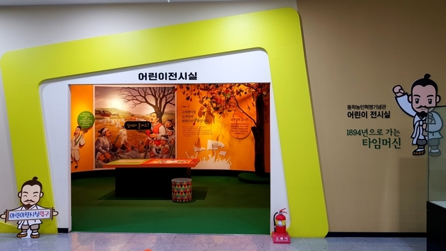 전시관에 들어서면 알록달록 색감으로 눈길을 끄는 곳이 있으니 바로 어린이 전시관입니다. 이곳은 동학농민운동에 대하여 어린이들의 눈높이에 맞추어 쉽고, 재밌게 설명이 되어 있으며 다양한 게임과 체험놀이를 할 수 있도록 구성이 되어 있습니다.