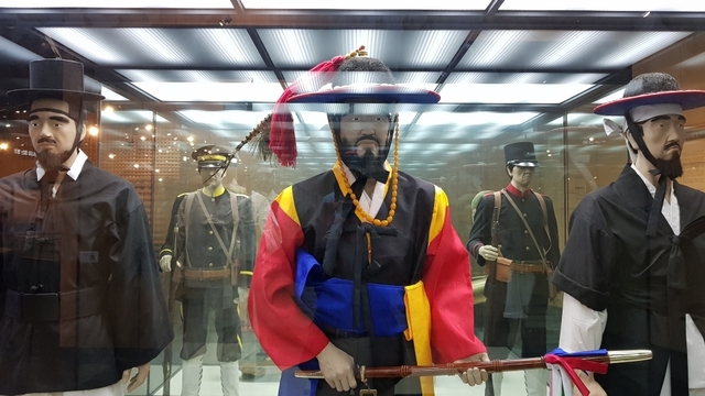 농민군의 열악함은 무기뿐만 아니라 의복에서도 나타났는데요. 전시관 한편에는 이를 잘 보여주는 마네킹이 서 있었습니다. 잘 갖춰진 관군과 일본군과 비교하면 농민군의 옷은 보잘것없습니다.