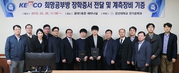 이에 공사는 이날 군산대학교 전기공학과에 재학 중인 최득호(3학년), 이승찬(4학년) 학생을 ‘희망공부방’ 멘토로 선정하고, 장학증서 전달과 함께 교육용 계측장비 등 학습기자재를 지원하기로 했다.