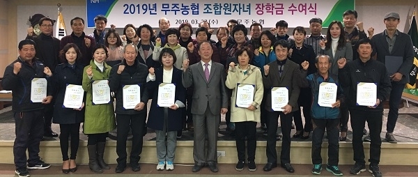 무주농협(조합장 곽동열)이 조합원 자녀들을 대상으로 한 장학금 전달식을 개최했다.