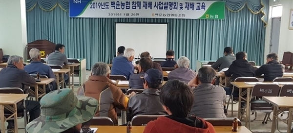 진안군 백운농협(조합장 신용빈)은 지난 26일 참깨공선회(회장 전병준) 회원 60명가량을 대상으로 참깨 재배교육을 실시했다. 참깨 재배를 적극 권장하고 있는 백운농협은 이날 경북 농업기술원 권중배 소장을 강사로 초빙했다.